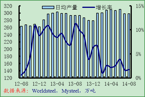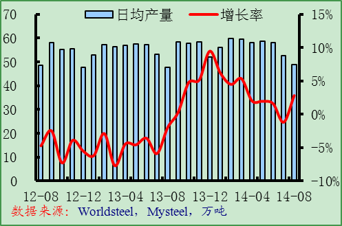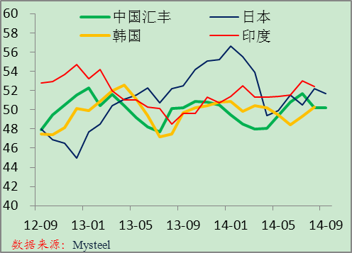 8月份亞洲粗鋼日均產(chǎn)量達(dá)到298.4噸,環(huán)比增長(zhǎng)0.1%,同比增長(zhǎng)1.7%,韓國(guó)和印度產(chǎn)量增長(zhǎng)明顯。根據(jù)中鋼協(xié)的統(tǒng)計(jì),9月份中國(guó)重點(diǎn)鋼企粗鋼日均產(chǎn)量環(huán)比小幅下降,而Mysteel調(diào)查的9月份全國(guó)鋼鐵PMI產(chǎn)出指數(shù)也有所下降。預(yù)計(jì)9月份亞洲粗鋼日均產(chǎn)量將環(huán)比下降。
