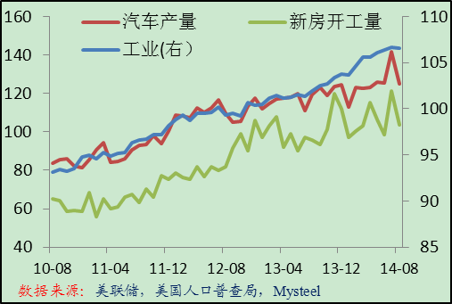 9月份美國(guó)粗鋼產(chǎn)量開始下降,結(jié)合進(jìn)口量數(shù)據(jù),可以大致判斷出市場(chǎng)需求正在環(huán)比下降,與工業(yè)、汽車產(chǎn)量和新房開工量數(shù)據(jù)吻合。