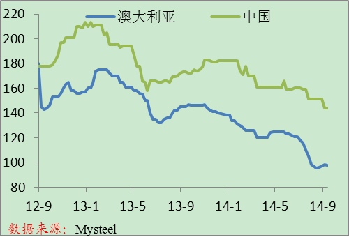 中國(guó)和日本鋼材庫存 澳大利亞主焦煤出口價(jià)和中國(guó)焦煤市場(chǎng)價(jià)