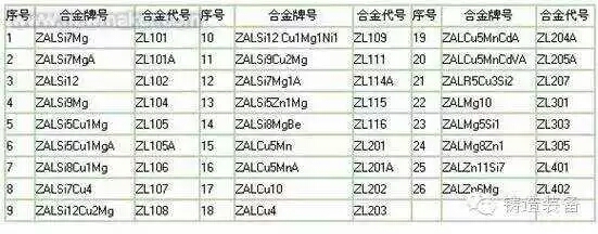 表3 鑄造鋁合金的牌號(hào)
