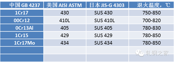 表 4:鐵素鐵不銹鋼的參考退火溫度
