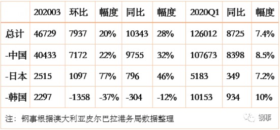黑德蘭港3月和Q1鐵礦石出口至中日韓數(shù)據(jù)