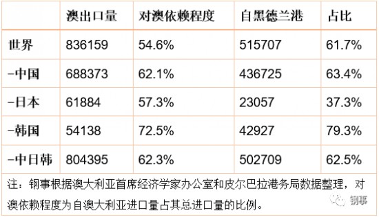 2019年黑德蘭港及澳大利亞鐵礦石出口中日韓數(shù)據(jù)
