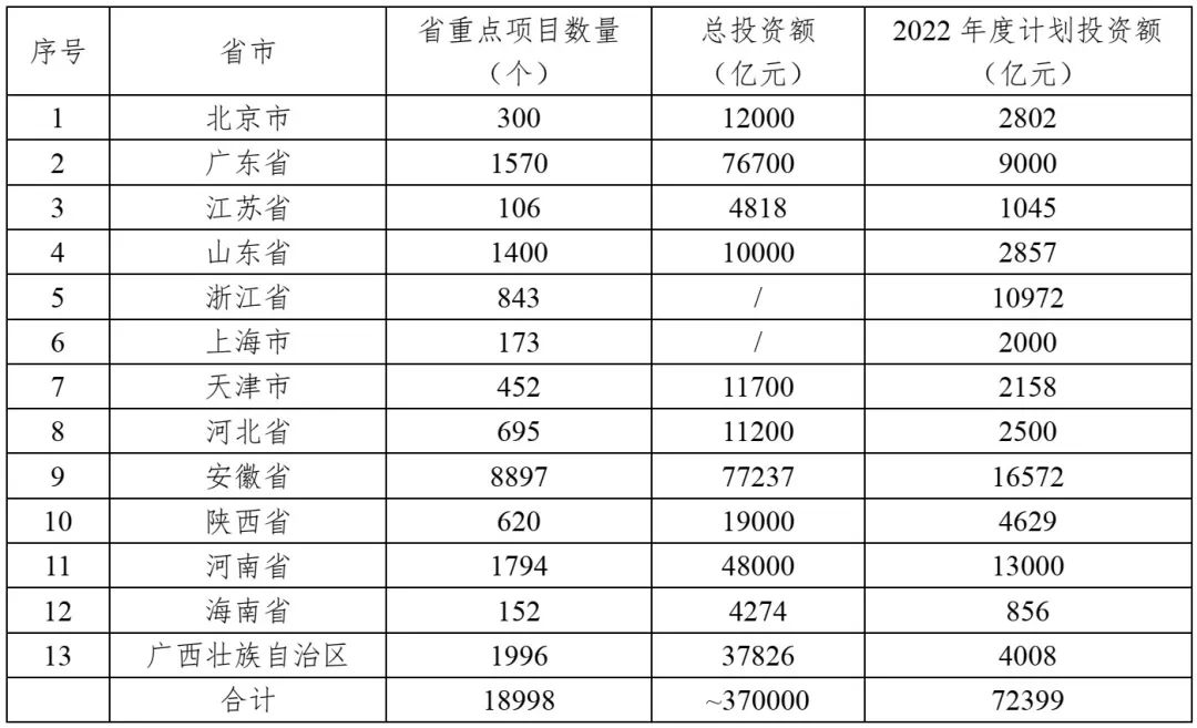 表3 2022年13?。▍^(qū)、市)重點(diǎn)項(xiàng)目投資情況
