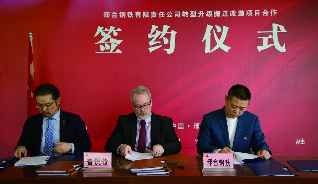 圖為普銳特冶金技術(shù)中國副總裁佐野洋一、普銳特冶金技術(shù)美國執(zhí)行COO Robert Lesage 與邢鋼董事長張育明簽訂軋機(jī)設(shè)備合同。 (普銳特冶金技術(shù))