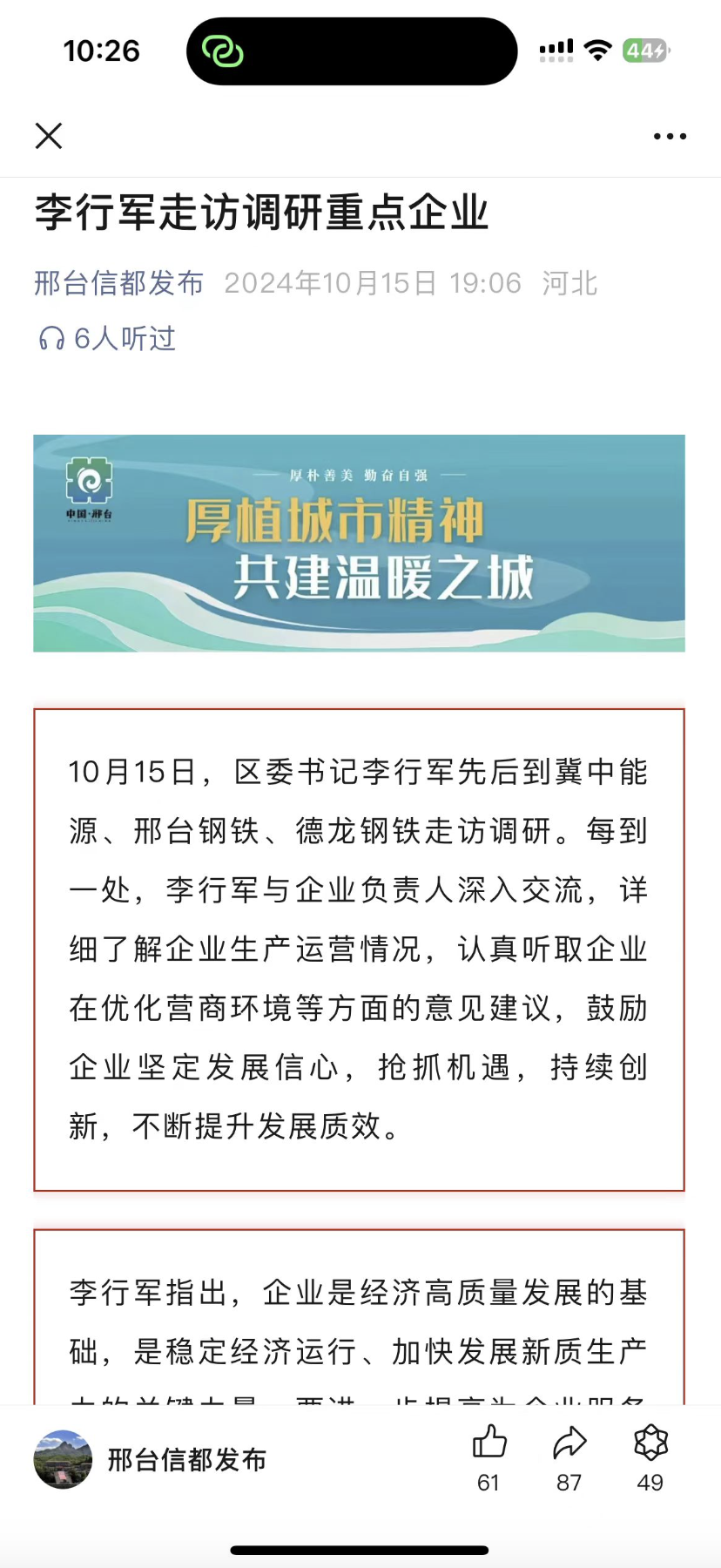 信都區(qū)區(qū)委書記李行軍走訪調(diào)研邢鋼