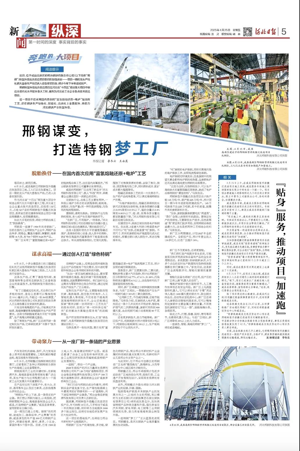 河北日?qǐng)?bào):邢鋼謀變,打造特鋼夢(mèng)工廠(chǎng)