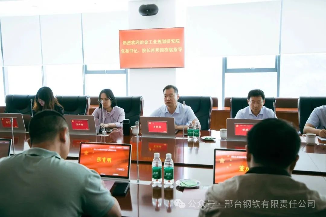 6月12日,冶金工業(yè)規(guī)劃研究院黨委書(shū)記、院長(zhǎng)肖邦國(guó)一行到邢臺(tái)鋼鐵有限責(zé)任公司調(diào)研,雙方就邢鋼構(gòu)建綠色低碳生態(tài)圈和實(shí)現(xiàn)高質(zhì)量發(fā)展進(jìn)行交流座談。