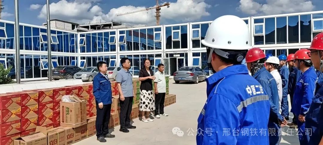 新廠房里,起重機(jī)下,工人們正一絲不茍地進(jìn)行設(shè)備安裝、調(diào)試。8月22日,邢臺市總工會黨組成員、經(jīng)審委主任龐蘇、威縣總工會主席岳朝軒等一行來到邢鋼搬遷項目建設(shè)工地,為連日來被潮熱天氣“烤驗”的建設(shè)者們送來“清涼”大禮包和真摯的慰問。公司副總經(jīng)理馬保良出席了“送清涼”慰問品發(fā)放儀式。