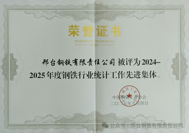 2025年9月10日至12日,由中國鋼鐵工業(yè)協(xié)會主辦的鋼鐵行業(yè)統(tǒng)計工作會議暨統(tǒng)計與信息工作委員會換屆會議在河北遷安召開。邢臺鋼鐵有限責(zé)任公司(以下簡稱“邢鋼”)獲評“2024-2025年度鋼鐵行業(yè)統(tǒng)計工作先進(jìn)集體”,該公司郭興坤同時榮獲“鋼鐵行業(yè)統(tǒng)計工作先進(jìn)工作者”稱號。這是邢鋼時隔七年再次斬獲該榮譽(yù),體現(xiàn)出企業(yè)在數(shù)據(jù)統(tǒng)計與信息化建設(shè)方面的持續(xù)進(jìn)步與行業(yè)高度認(rèn)可。