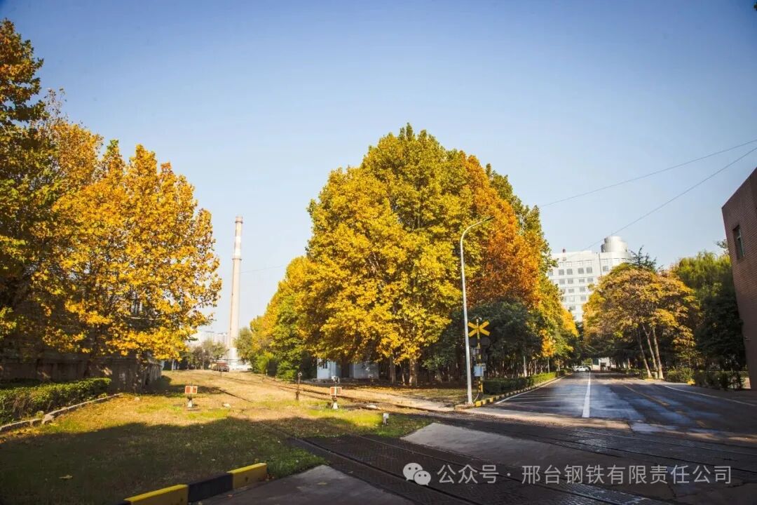 多年來,邢鋼秉持“綠水青山就是金山銀山”理念,持續(xù)加大環(huán)保投入,大力推進(jìn)節(jié)能減排、與城市融合發(fā)展,廠區(qū)成為詩與畫的最美園林。這片絢爛的秋色,就是邢鋼綠色發(fā)展的一張名片。