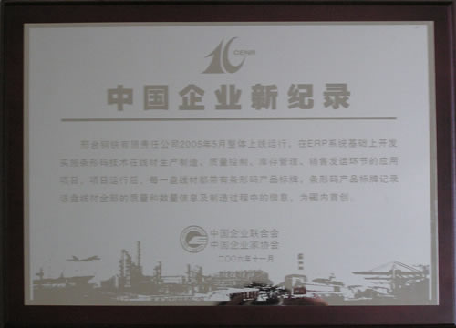 In August 2007, Xingtai Steel passed the certificate of ISO/TS16949:2002 (International Automobile Industry Quality Management System Certificate.)
